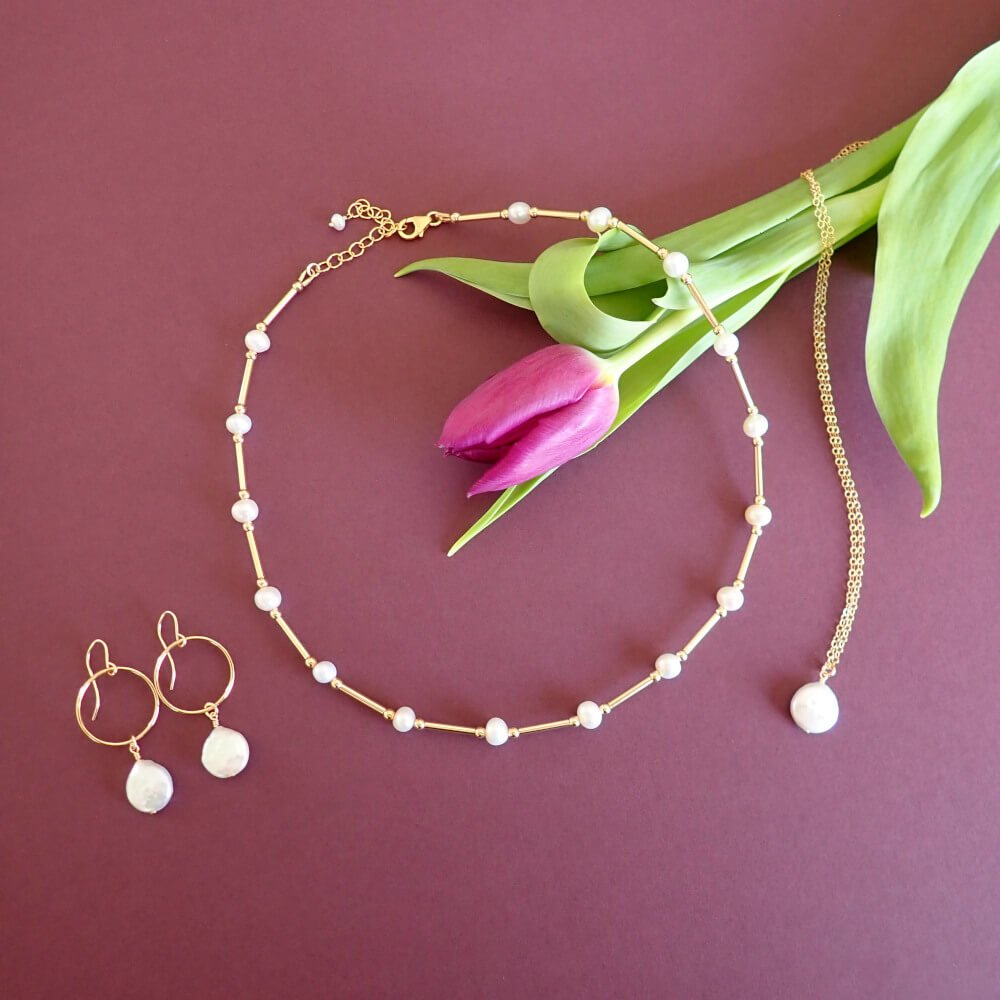 14k gold filled beaded necklace featuring freshwater ball pearls – gift boxed